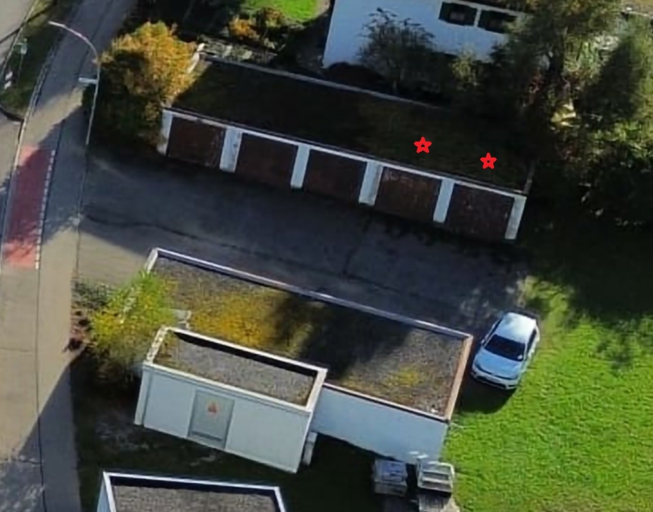 Der zum Verkauf kommende Grundstücksanteil für die 2 Garagen entspricht ca. 30 m2. Der gesamte Vorplatz (Gemeinschaftsplatz für 10 Garagen) entpricht ca. 210 m2. Das gesamte Garagenareal wurde iin den 70er Jahren errichtet.