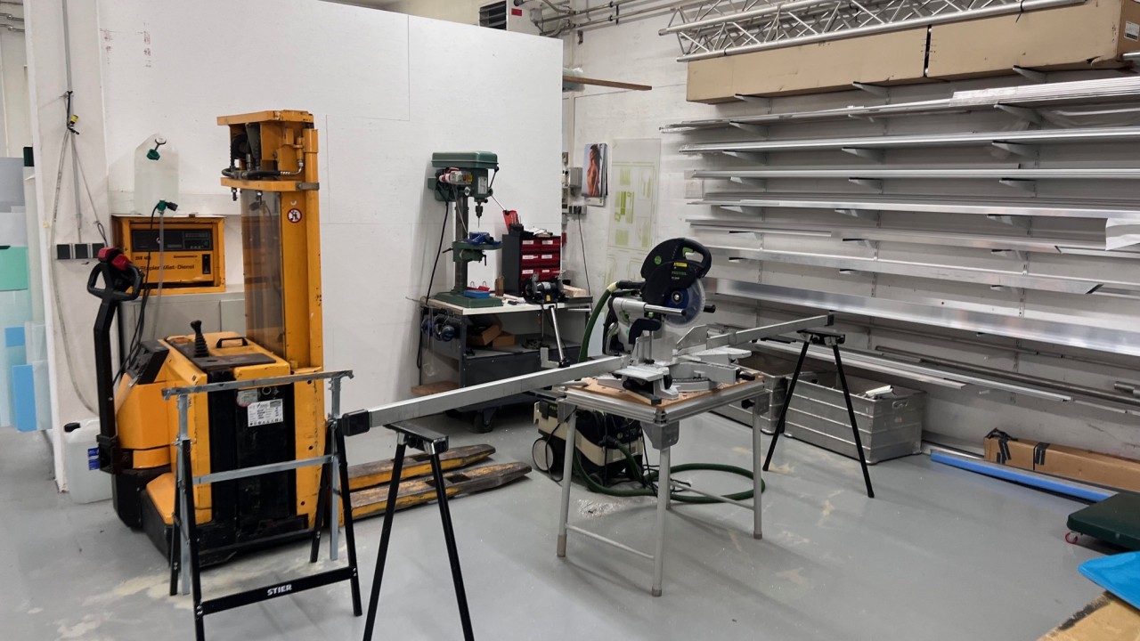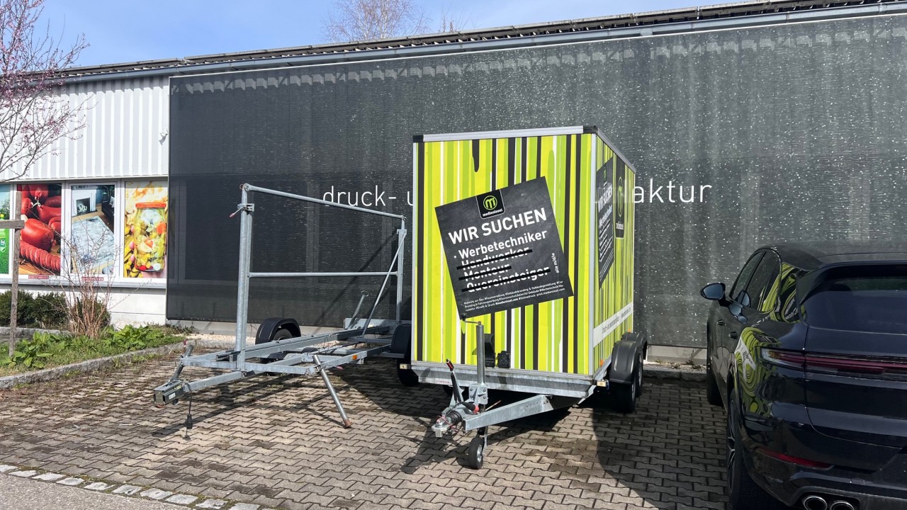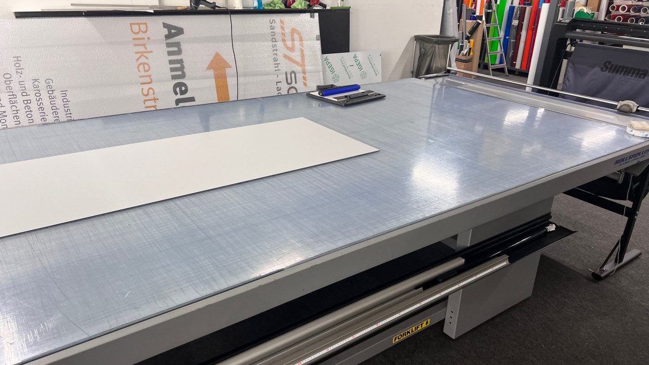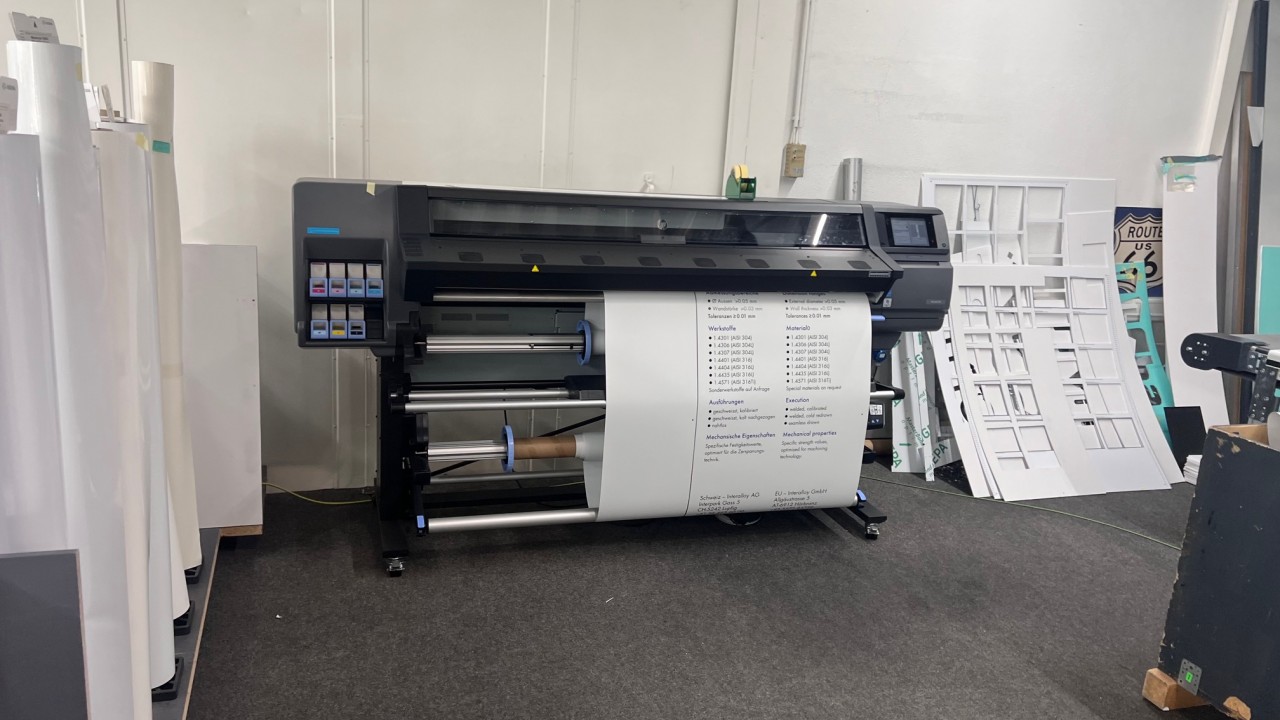 Zum Verkauf kommt die gesamte Betriebs- und Geschäftsausstattung des Unternehmens wie z.B. Fräs-, Schneid- und Bohrmaschine, Fabr. Bullmer, Typ Premium Cut 163, BJ 2018, UV-Gel-Digitaldrucker, von Rolle zu Rolle, Fabr. Canon, Typ Colorado 1640 mit UV-Trocknung, BJ ca. 2018, Konfektionstisch mit Beleuchtung, Fabr. Rolls. Roller AB Schwede, Typ Rolls Roller 400/170R Regular, Tischlänge 4.000 mm, Tischbreite 1.700 mm, BJ ca. 2021, Plotter, Fabr. Summa, Typ Class T-Series 120, BU ca. 2018, Büroeinrichtung, Fahrzeuge etc.